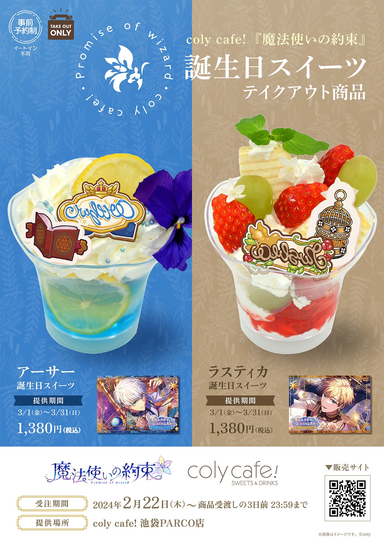 【事前予約】にて、3月に誕生日を迎える魔法使いたちをお祝いする誕生日スイーツをテイクアウト限定で販売いたします。